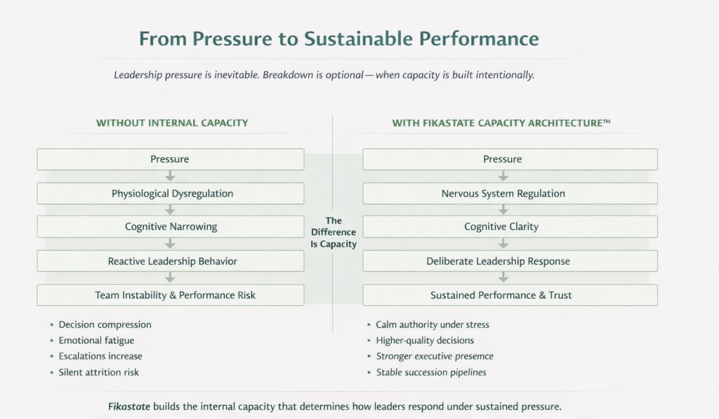 Fikastate strengthens the internal capacity of leaders to remain calm, decisive, and effective in complexity.